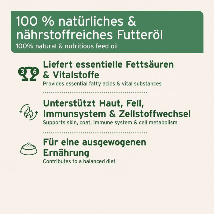 Das Öl kann einfach unter das tägliche Futter gemischt werden.