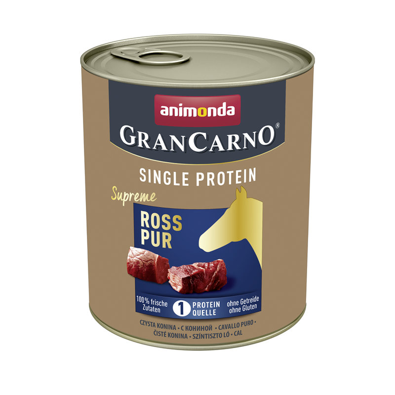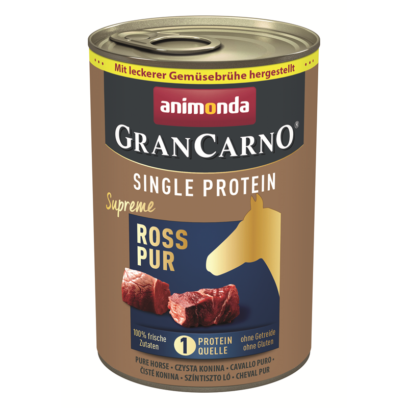 Natürliche, artgerechte Ernährung für den Hund – dafür steht die Hundefuttermarke GranCarno®. Frische, fleischliche Zutaten sorgen für einen unverfälschten Geschmack, so wie Hunde ihn schätzen. Das leckere Nassfutter von GranCarno versorgt den Hund mit lebenswichtigen Nährstoffen.GranCarno Adult Single Protein Supreme Ross pur: Feuchtfutter für sensible Hunde.