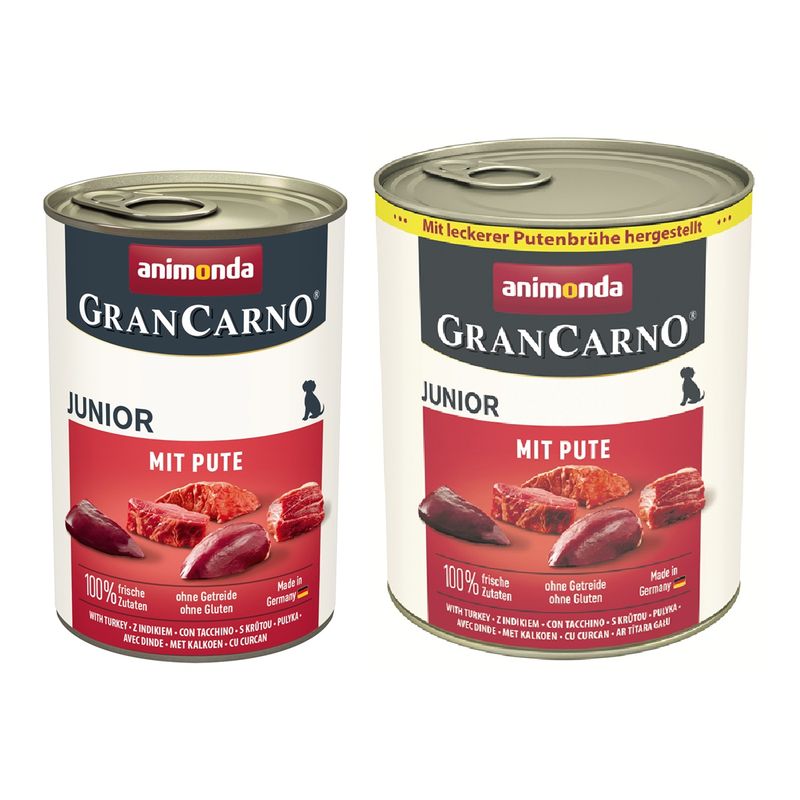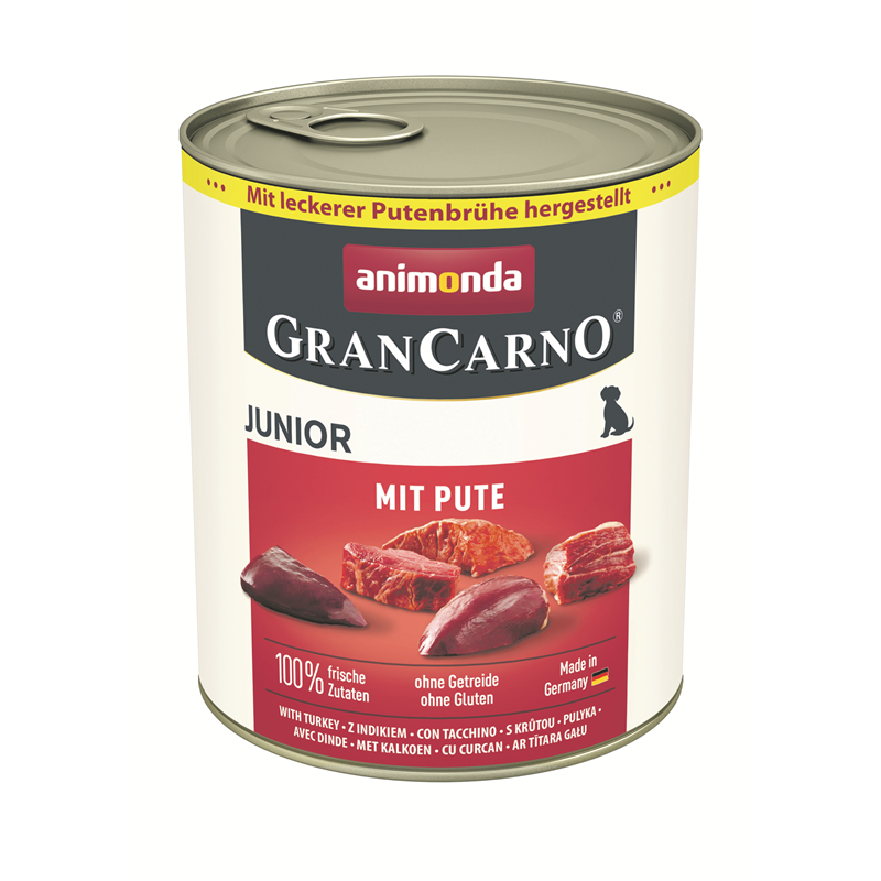 GranCarno Junior mit Pute bietet ausgewogene, schmackhafte und gesunde Ernährung auf höchstem Niveau für Hunde im ersten Lebensjahr.