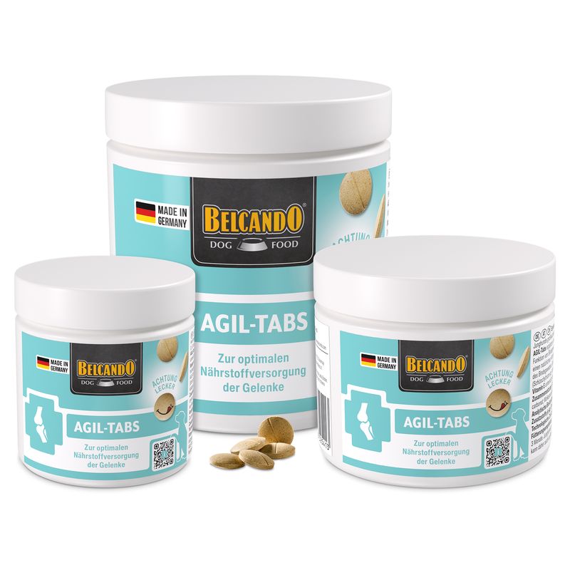 AGIL-Tabs ergänzen die Versorgung des Hundes gezielt mit Nährstoffen pflanzlichen und maritimen Ursprungs, die für ihre unterstützende Wirkung auf die Funktion von Bindegewebe, Knorpel und Gelenken bekannt sind.