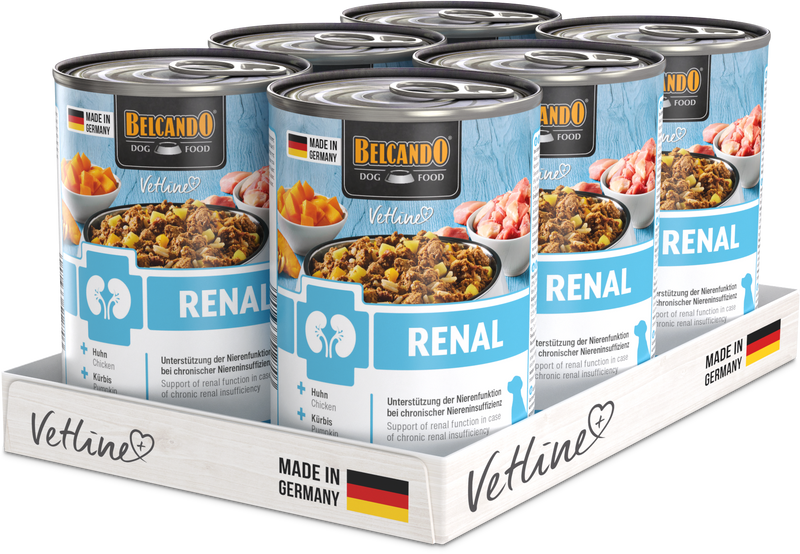 Zudem bietet die Vetline die Wahl: Nassfutter, Trockenfutter – oder beides zusammen? Beide Futterarten sind optimal auf die Bedürfnisse nierenkranker Hunde abgestimmt. Damit die Umstellung möglichst reibungslos funktioniert, solltest Du Deine gewohnten Abläufe beibehalten. Wähle daher die Futterart, die Dein Hund schon vorher gewohnt war. Wenn Dein Hund Trocken- und Nassfutter gemischt am liebsten mag, kannst Du dies auch mit Vetline Renal Nass- und Trockenfutter fortführen.