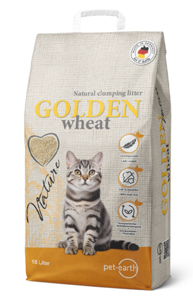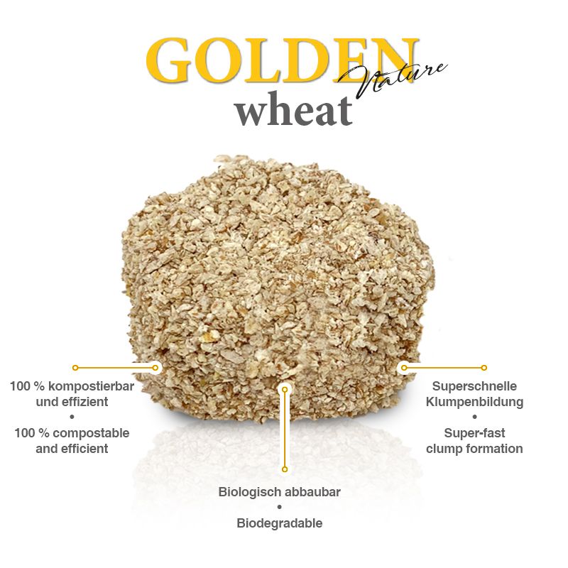 Mit GOLDEN wheat - Nature wurde eine Katzenstreu mit bester Geruchsbindung geschaffen. Die natürlichen Pflanzenfasern aus Weizenresten werden in einem patentierten Prozess zum natürlichen Geruchskiller mit höchster Saugkraft. Auf diese innovative Weise wird den Katzen eine staubfreie Umgebung geboten.