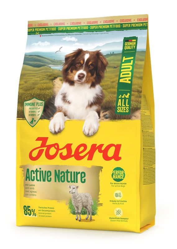 Josera Active Nature ist für alle Kraftpakete, die die Freiheit lieben. Die hochwertige, glutenfreie Rezeptur mit einer Extraportion Protein aus gut verträglichem Geflügel und köstlichem Lamm versorgt Vierbeiner mit der nötigen Power. Das enthaltene L-Carnitin unterstützt unsere Hunde bei erhöhter Aktivität, da es die Energiebereitstellung aus Fettsäuren ermöglicht.