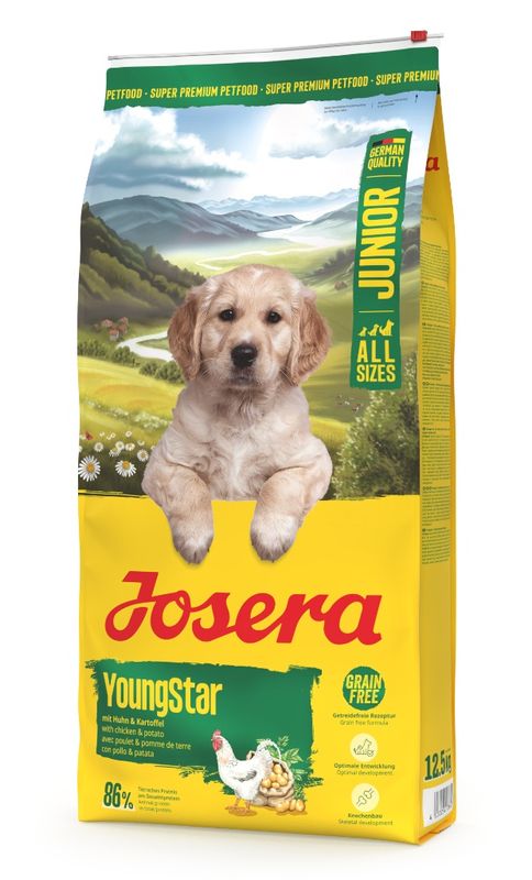 JoseraYoungStar ist das optimale Welpenfutter für Welpen und Junghunde aller Rassen ab der 6. Woche. Es versorgt junge Abenteurer mit besonders wertvollen Inhaltsstoffen und sorgt so für eine optimale Entwicklung. Die Rezeptur ist komplett getreidefrei – und setzt bei diesem Futter für heranwachsende Hunde auf leckeres Huhn mit Kartoffel und 86 % tierischem Protein am Gesamtprotein. Der Anteil des Geflügelproteins wurde mit der neuen Rezeptur erhöht. Das schmeckt kleinen Vierbeinern und ist außerdem gut verträglich.