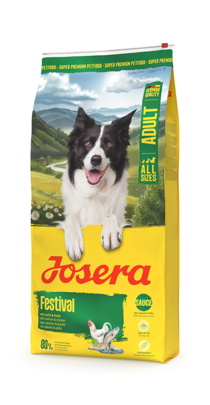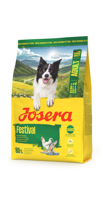 Für unsere anspruchsvollen Feinschmecker bietet Josera Festival ein einzigartiges Schlemmermenü: Dieses besondere Adult Hundefutter mit Soße kann sowohl trocken als auch nass gefüttert werden.