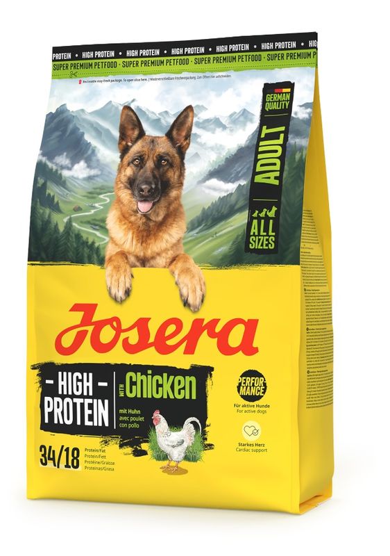Josera High Energy heißt jetzt High Protein Chicken. Im neuen Design, aber mit unveränderter, bewährter Rezeptur.