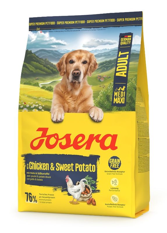 Josera Nature Energetic heißt jetzt Medi/Maxi Chicken & Sweet Potato. Im neuen Design, aber mit unveränderter, bewährter Rezeptur.