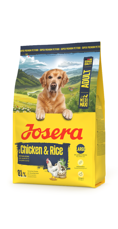 Josera Large Breed heißt jetzt Medi/Maxi Chicken & Rice. Im neuen Design, aber mit unveränderter, bewährter Rezeptur.