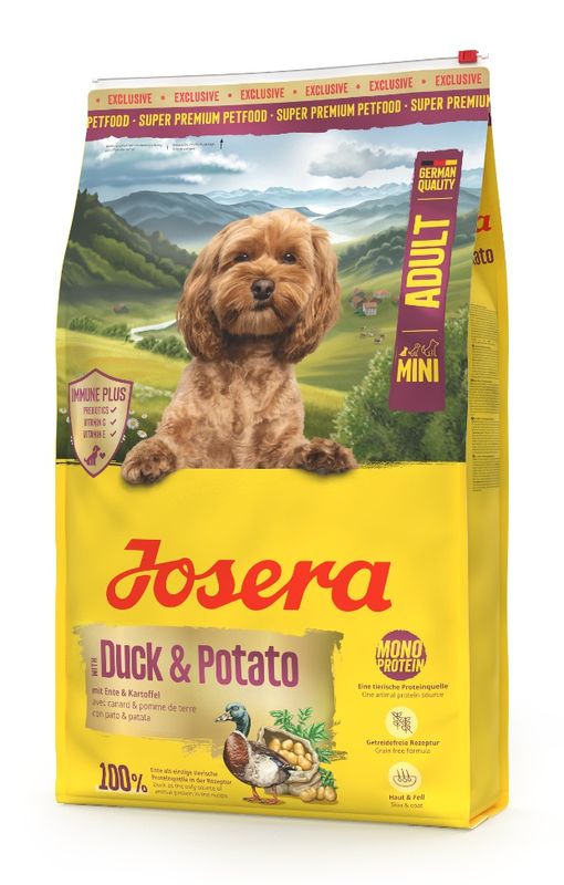 Never change a winning team? Weil Josera Ente & Kartoffel so gut ankommt, gibt’s jetzt Josera Mini Duck & Potato – die Mini-Version des Kundenlieblings. Auch dieses Trockenfutter bringt wertvolles Entenprotein und eine getreidefreie Rezeptur mit. Außerdem sind die Kroketten extra kleiner, damit sie unseren kleinen, ausgewachsenen Hunden noch besser bekommen.