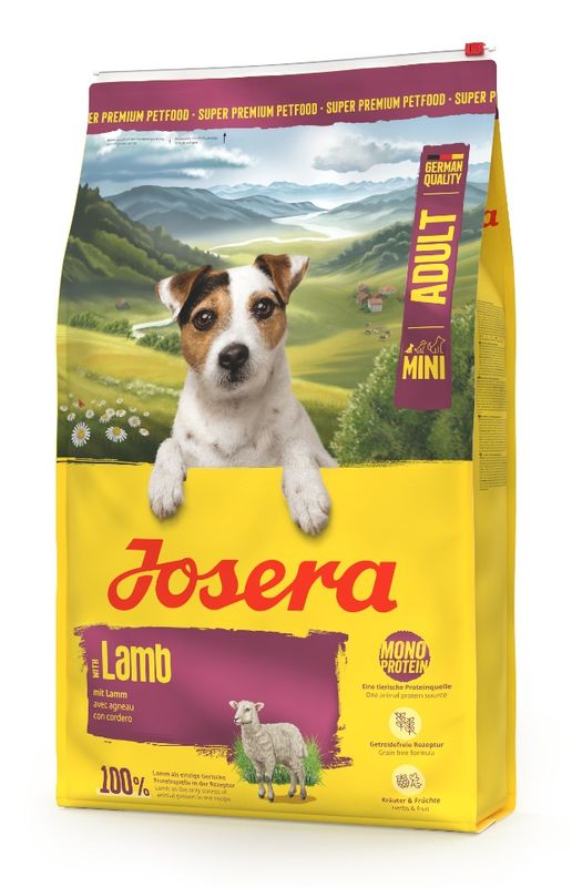 Für Feinschmecker auf kleinen Pfoten hat Josera Mini Lamb entwickelt. Die getreidefreie Rezeptur mit 100 % Lamm als einzige tierische Proteinquelle ist besonders gut verträglich und eignet sich auch für empfindliche Hunde. Dabei ist sie alles andere als langweilig: Ausgewählte Kräuter und Früchte sorgen für extra Abwechslung im Napf.