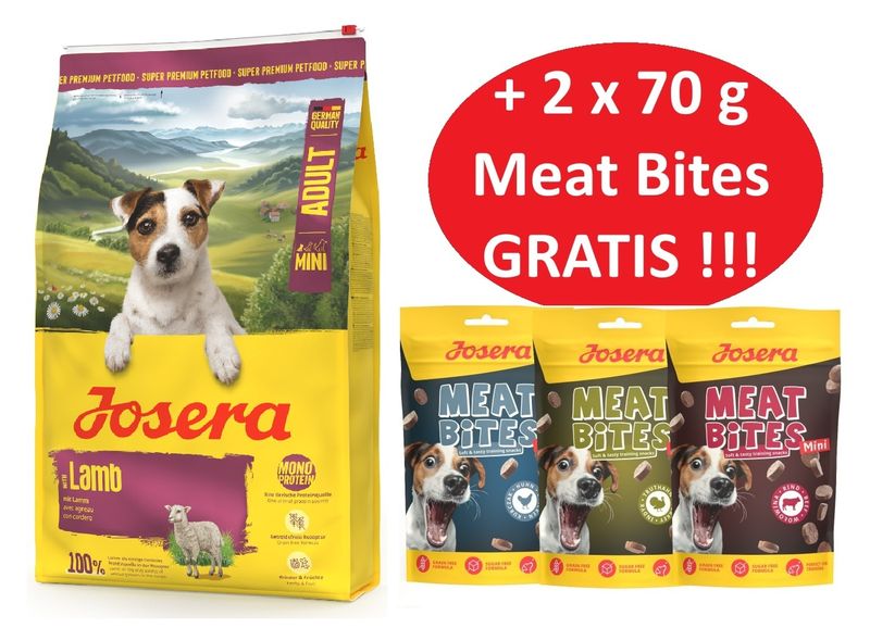 JOSERA MINI Adult Lamb 3 kg + 2 x 70 g Meat Bites Mini