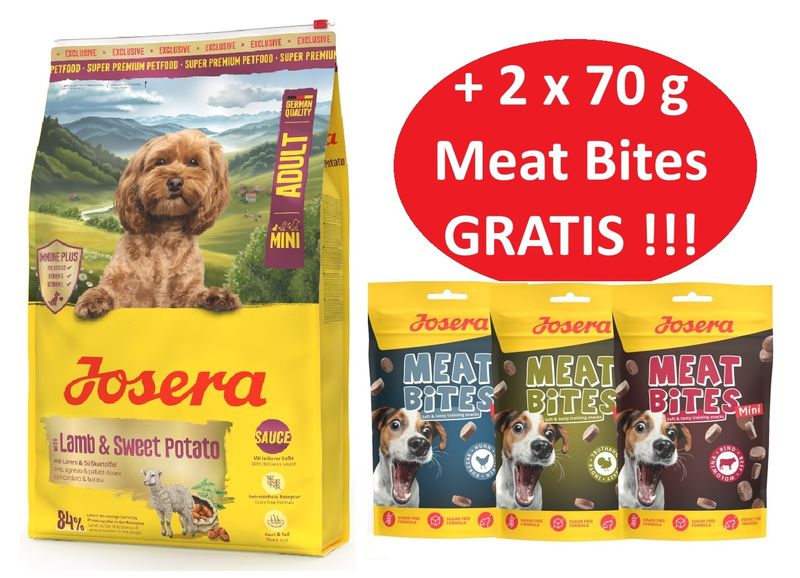 JOSERA MINI Adult Lamb & Sweet Potato 3 kg + 2 x 70 g Meat Bites Mini