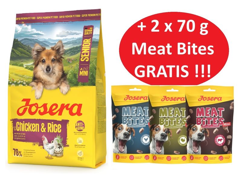 JOSERA MINI Senior Chicken & Rice 3 kg + 2 x 70 g Meat Bites Mini