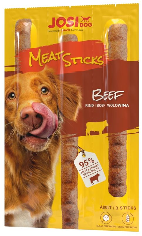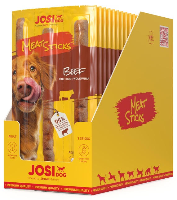 Sooo saftig sind nur die JosiDog Meat Sticks Rind! Die saftigen Fleischsticks für ausgewachsene Hunde sind der perfekte Trainingssnack zum Verwöhnen, Belohnen und für den kleinen Hunger zwischendurch. Der deftig-herzhafte Geschmack in Kombi mit dem angenehm fleischigen Duft lässt unseren Hunden das Wasser im Mäulchen zusammenlaufen und sorgt für eine hohe Akzeptanz.