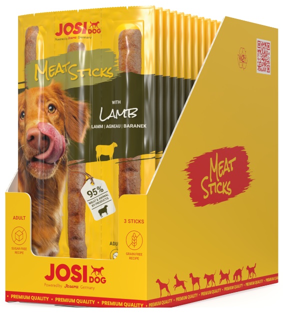 Natürlich sind die Kausnacks auch perfekt für unterwegs geeignet. Die praktische Verpackung enthält 3 einzeln versiegelte JosiDog Meat Sticks.