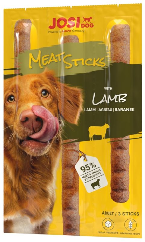 „Feeeeeini, hier Deine JosiDog Meat Sticks mit Lamm!“ So lieben unsere Fellnasen es – lecker fleischig, mit verführerischem Duft und viel Geschmack. Die weichen Kaustangen für ausgewachsene Hunde bringen all das mit. Und noch mehr: Denn dank ihrer Form sind die Trainingssnacks super portionierbar und eignen sich so zum Verwöhnen, Belohnen und für den kleinen Hunger zwischendurch.