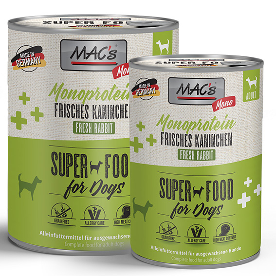 Mit frischem Kaninchenfleisch als einzige Proteinquelle ist MAC's Mono Frisches Kaninchen ideal für empfindliche Hunde sowie zur Ausschlussdiät geeignet. Kombiniert mit frischen Kartoffeln, Erbsen und Rosmarin liefert diese getreidefreie Rezeptur Alles, was dein Vierbeiner für ein glückliches Hundeleben benötigt.