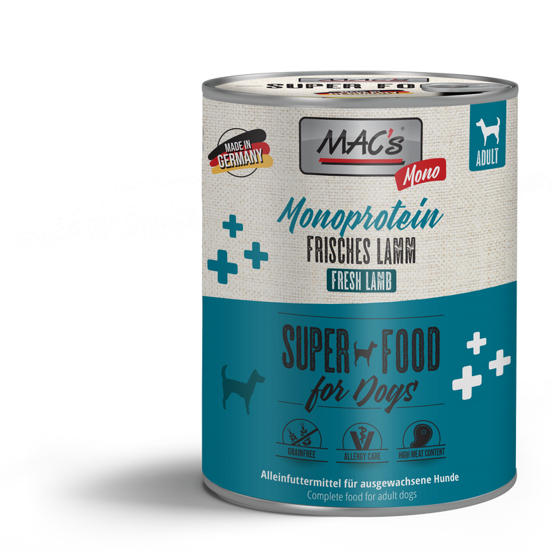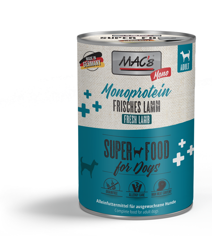 Das Menü für empfindliche Fellnasen: MAC’s Mono Frisches Lamm ist ideal für Hunde mit Allergien und Unverträglichkeiten geeignet. Mit Lamm als einzige Proteinquelle und Süßkartoffeln als Kohlenhydratlieferant bietet diese Sorte eine ausgewogene Mahlzeit für deinen Hund. Getreidefrei und schonend zubereitet – perfekt für sensible Vierbeiner mit Anspruch!