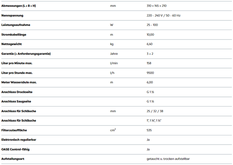 • STOPPT RECHTZEITIG: Sicherer Schutz vor Trockenlaufen oder Blockieren dank eingebauter OASE Environmental Function Control (EFC)