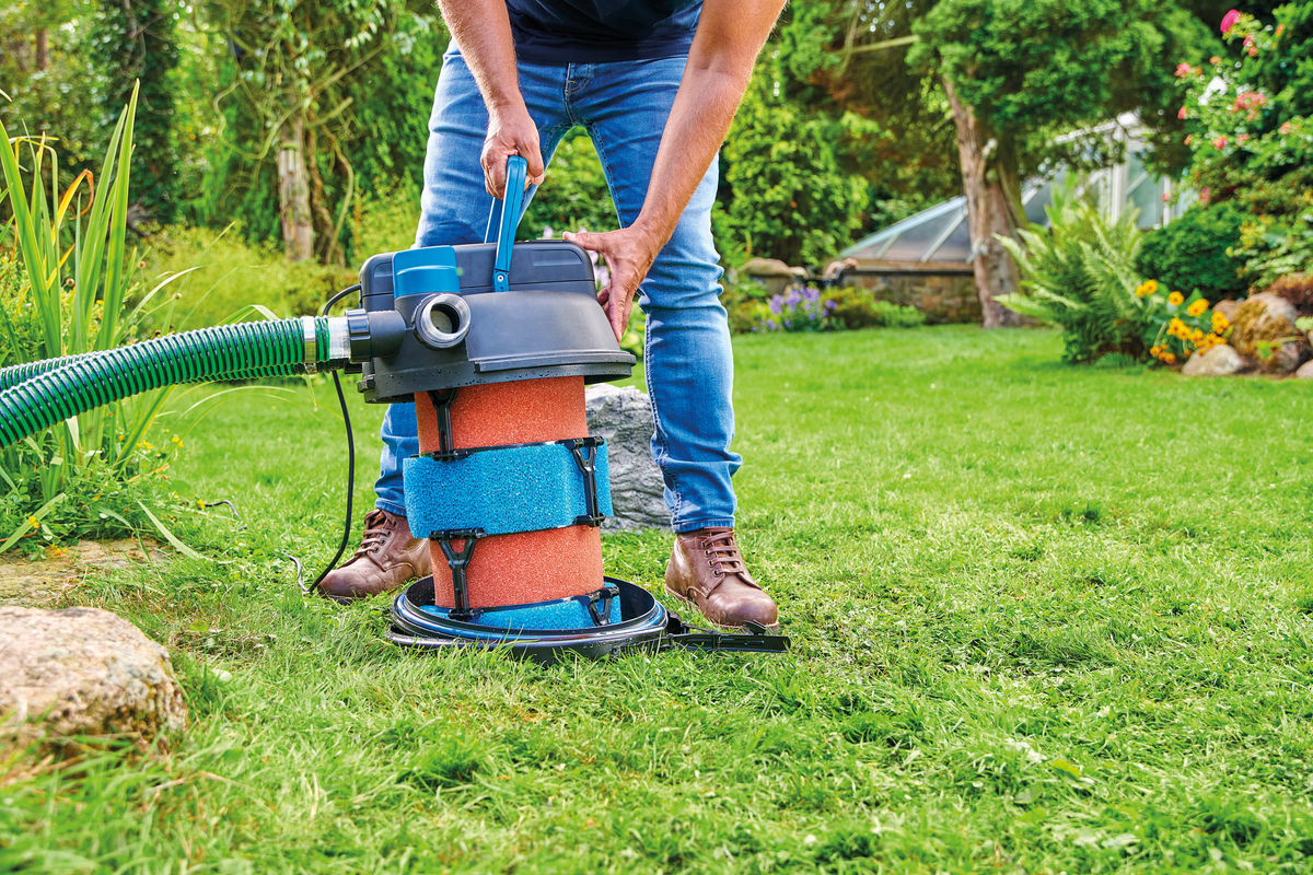 Der Filter kann in die Erde eingegraben und optimal in die natürliche Umgebung integriert werden. Alle wichtigen Elemente sind über den abnehmbaren Filterkopf bequem zugänglich.